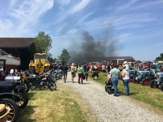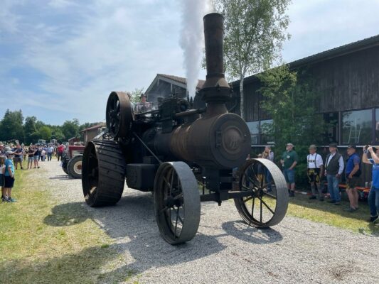 Die Gastgeber freuten sich über eine rege Teilnahme, allein die Bulldogfreunde von Prien-Atzing trafen sich ab Rimsting zu einer gemeinsamen Ausfahrt mit 22 Traktoren. Sehenswerte Aufmerksamkeit bekam die Dampfzugmaschine von Wast Bichler aus Umrathshausen. Die nächsten Ausrück-Termine für Lenker mit alten Bulldogs sind am Sonntag, 18. Juni nach Aschau sowie am Samstag, 24. Juni zum Treffen beim Festzelt am Hartsee in der Gemeinde Eggstätt.