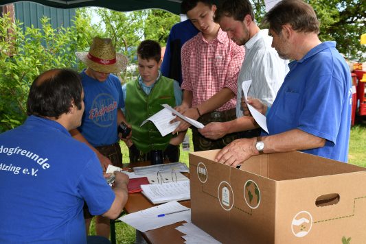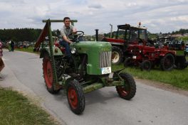 Von Klaus Kubitza – Mehr als 200 Bulldogs und ihre stolzen Besitzer folgten heuer am Feiertag „Christi Himmelfahrt“ der Einladung der Bulldogfreunde Prien-Atzing zum Treffen beim Bernhackerbauern in Arbing. Den Pokal für den Meistpreis erhielten die Bulldogfreunde Aschau und diese konnten gleich ein neues Mitglied werben, nämlich den Besucher aus Aschauer, der den Tombola-Hauptpreis, einen funktionstüchtigen McCormick-Bulldog, gewann. Als zweiten und dritten Preis gab es Tretbulldogs. Neben der Besichtigungsmöglichkeit vieler alter Traktoren und landwirtschaftlicher Geräte genossen die zahlreichen Besucher zur Musik der „Ganz Oafach-Muse“ vielerlei zu Essen und zu Trinken, sowie die Kinder Popcorn und eine Hüpfburg.