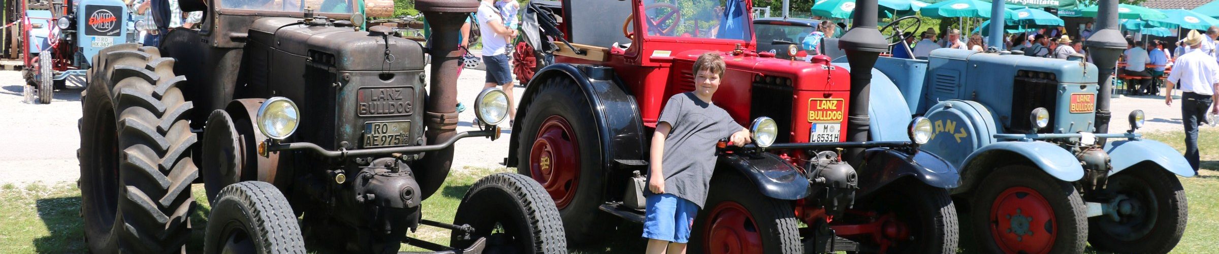 Über 300 alte Bulldog, Traktoren, Zugmaschinen, stationäre Motoren, landwirtschaftliche Geräte und Maschinen und ihre stolzen Besitzer aus der ganzen Region treffen sich in Aschau. Alle bekannten Landmaschinenmarken der Zeit vor und nach dem Zweiten Weltkrieg, wie Lanz, Deutz, Kramer, Hanomag, Fendt oder Eicher erwarten die Aschauer Bulldogfreunde. „Wir haben schon ein paar Monate auf dieses Bulldogtreffen hingearbeitet und freuen uns über jeden der mit seiner Maschine zu uns kommt“, so Sebastian Bichler. Schon damals beim Kauf waren sie der Stolz ihres Besitzers, die Traktoren, Schlepper und Bulldogs aller Fabrikate, die kleinen wendigen Traktoren aus dem Bergland ebenso, wie die PS-starken Gefährte aus dem Unterland; heute nach über 70 Jahren sind sie liebevoll restauriert und natürlich voll funktionsfähig. Manche sorgsam gepflegten Glanzstücke dürften bei ihrer Neuanschaffung in den 50er Jahren des vergangenen Jahrhunderts schlechter ausgesehen haben, als heute nach der gründlichen Überholung und der abschließenden Verschönerung mit Farbe und Pinsel. „Es ist Ehrensache, dass jeder Teilnehmer den Festplatz auf vier Rädern erreicht, nur bei den Uralt-Veteranen, die noch auf Eisenreifen fahren oder mit Hartgummibandagen auf den Rädern machen wir eine Ausnahme“, so die beiden Vorsitzenden des Aschauer Bulldogvereins Robert Stuffer und Sebastian Aringer. Mindestens 50 Jahre haben sie schon alle auf dem Buckel die landwirtschaftlichen Veteranen, die in Aschau erwartet werden; die Bulldogvereine aus der Region werden vollzählig mit ihren Prachtstücken erschienen. Der Verein mit den meisten Fahrzeugen erhält einen Ehrenpreis des Vereins der älteste vorgestellte Bulldog erhält den Ehrenpreis des Vereins, jeder Teilnehmer erhält eine Ehrengabe. Die Interessenten alter Maschinen können sich in Aschau ein Bild von den Neuigkeiten auf den Landmaschinenmessen der 50er Jahre des vergangenen Jahrhunderts machen, können ihre Erfahrungen beim Betrieb alter Maschinen austauschen und nebenbei auch noch ein paar Ersatzteile und Reserven für den eigenen Bulldog daheim mitnehmen.