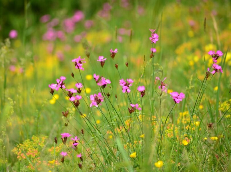 Im anschließenden Vortrag von Jonas Garschhammer, dem Biodiversitätsbeauftragten am Landratsamt Rosenheim, wurde zunächst eindrücklich dargelegt, wie sehr die Artenvielfalt von landwirtschaftlich genutzten Grünlandflächen durch die ursprüngliche, traditionelle Landwirtschaft profitiert hat und unser romantisches Bild einer intakten Kulturlandschaft, wie sie vielfach in der Landschaftsmalerei dargestellt wurde, geprägt hat. Zur Wahrheit gehört aber auch, dass mittlerweile aufgrund Intensivierung der Grünlandnutzung u.a. durch Melioration, Düngung, Mahdhäufigkeit und Entwässerung es zu einer Vereinheitlichung der Standortbedingungen kam und artenreiche Salbei-Glatthafer-Wiesen nur noch auf 3% der Grünlandflächen zu finden sind, in einigen Gemeinden des Landkreises, sogar auf weniger als 1% und viele der ursprünglich dort vorkommenden Insektenarten (z.B. die Knautien-Sandbiene), mittlerweile vom Aussterben bedroht sind.