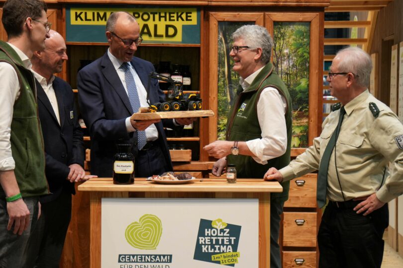 Am Dienstag besuchte Bundeskanzler Friedrich Merz den Branchenstand des Deutschen Forstwirtschaftsrates (DFWR) auf der Grünen Woche in Berlin. Der Bundeskanzler informierte sich über die aktuellen Herausforderungen und Zukunftsfragen von Wald, Forstwirtschaft und Holzverwendung in Deutschland.