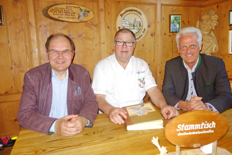 Foto: Hötzelsperger – Beim Entenwirt am Samerberg von links: Bundesminister a.D. Christian Schmidt, Entenwirt Peter Schrödl und Bundesminister a. D. Dr. Peter Ramsauer