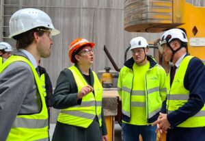 V.l.n.r.: Simon Hausstetter, 1. Bürgermeister der Gemeinde Rohrdorf, Bundesministerin Klara Geywitz, Henning Klein, Produktionsleiter Zementwerk Rohrdorf und Rohrdorfer Geschäftsführer Mike Edelmann.