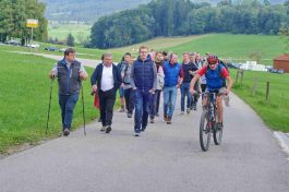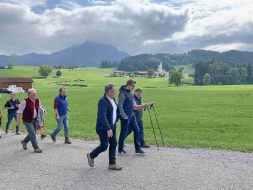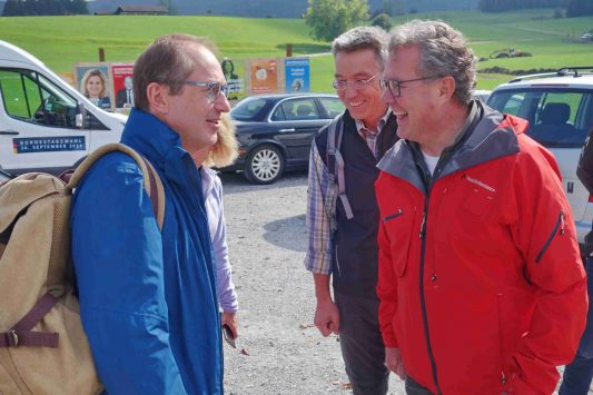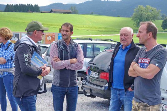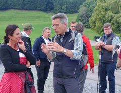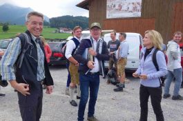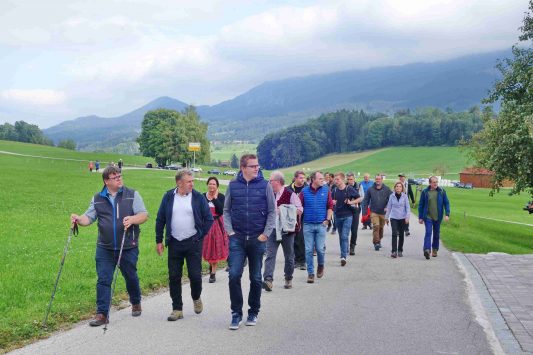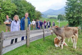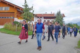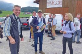 „Da könnte ich länger bleiben“ – das waren die ersten Worte als der vormalige Bundesverkehrsminister Alexander Dobrindt und Vorsitzende der CSU-Landesgruppe im Deutschen Bundestag auf Einladung der Rosenheimer Bundestagsabgeordneten Daniela Ludwig in Schilding auf dem Samerberg aus seinem Auto ausstieg. Gemeint waren dabei die rundum sommerlichen und einladenden Landschaftsstimmungen der Wanderregion Samerberg mit der Hochries als Ausflugsberg und das passende Ausflugswetter. Begrüßt wurde der CSU-Politiker unter anderem von Landtagsabgeordneten Klaus Stöttner, von Landrat Otto Lederer und von Samerbergs Bürgermeister Georg Huber. Die von Daniela Ludwig vorbereitete Wandertour führte vorbei an der Hofkapelle der Bauersfamilie Mayer hinauf zur Dandlbergalm mit herrlichem Inntal-Blick. Bei der Alm kam es dann zu den politischen Gesprächen, natürlich durfte dabei auch der Brennerbasistunnel und dessen Planungen nicht fehlen.
