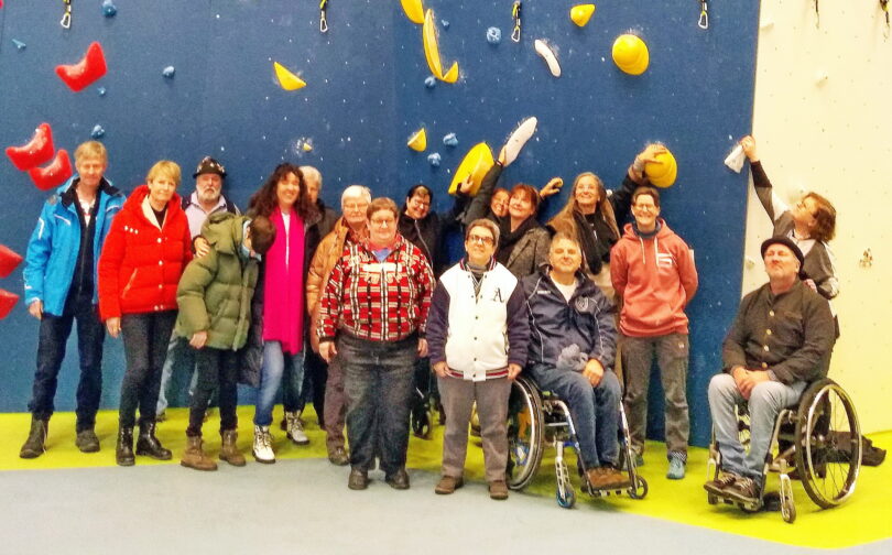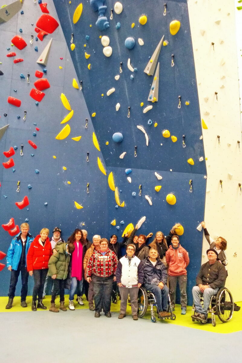 Mit der neuen, umfassend barrierefrei konzipierten Kletterhalle in Bad Aibling besuchten die Tagungsteilnehmer am zweiten Tag ein Musterbeispiel für Barrierefreiheit und Inklusion. Die Vision, welche die Ergotherapeutin und Klettertrainerin Natascha Haug, ihr Mann Achim und die gemeinsame Freundin Katja Müller im Jahr 2015 hatten, ist wahr geworden. Im Basislager, so heißt diese bundesweit erste deutsche Inklusionskletterhalle, können Menschen mit und ohne Behinderung zusammen klettern. Aber nicht nur das. In der Kletterhalle wurden zahlreiche Arbeitsplätze für Menschen mit Behinderung geschaffen. Es gibt inklusive Arbeitsplätze in der Küche, im Service, an der Kasse und im Routenbau, sowie als Hausmeister und als Trainer. Auch die Funktionen im Verein, der DAV Sektion Stützpunkt Inntal, sind gleichermaßen durch Menschen mit und ohne Behinderung besetzt.