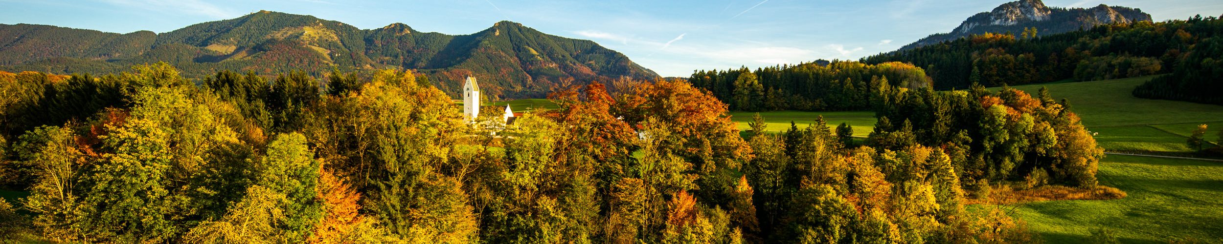 Wohl nicht von langer Dauer wird die Farbenpracht des Herbstes sein, die sich derzeit auf dem Samerberg dank des sonnigen und nebelfreien Wetters zeigt. Eine ganz aktuelle Aufnahme mit abendlichem Blick auf den Samerberger Ortsteil Rossholzen macht deutlich, wie bunt und vielfältig die Baum- und Naturlandschaft gerade ist.
