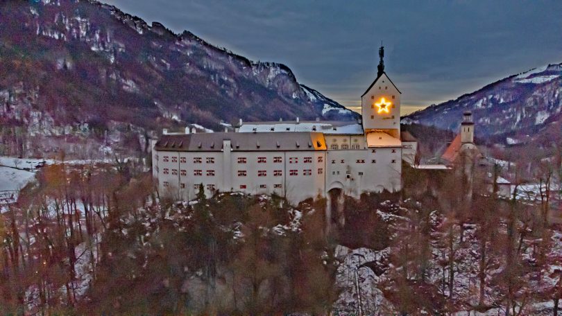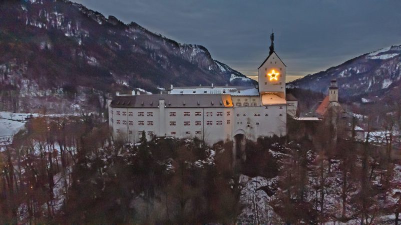 Die Corona-Pandemie jedoch hat die Gemeinde und Tourist Info dazu bewogen, den Adventsmarkt abzusagen. Die Entscheidung war schwer, aber unumgänglich. Es wäre unsolidarisch und verantwortungslos einen Markt abzuhalten. Es gilt jetzt füreinander und miteinander zu handeln, um die Situation nicht weiter entgleisen zu lassen. Doch hat man sich in Aschau i.Chiemgau kurzerhand etwas Anderes überlegt und so wird in der Adventszeit erstmals etwas Einzigartiges erstrahlen. Als Zeichen der Zuversicht, des Zusammenhaltes, der Hoffnung und des Friedens wird an der Nordseite des Schlossturmes auf Schloss Hohenaschau ein 4,5 m großer Stern leuchten, an dem sich nicht nur die Bürger von Aschau, sondern auch die Menschen in der Region erfreuen sollen. „So etwas gab es bis jetzt noch nie und es ist eine Freude, dass unsere Idee mit dem übergroßen Stern umgesetzt werden konnte“, freut sich Aschaus Tourismuschef Herbert Reiter. Bauhofleiter Rudi Angermaier mit seiner Mannschaft und Peter Freisler von Priental Elektronik haben dabei geholfen, dieses Projekt zu verwirklichen. Ein Dank geht an dieser Stelle auch an die Bundesanstalt für Immobilienaufgaben, die diesem Vorhaben zugestimmt hat.
