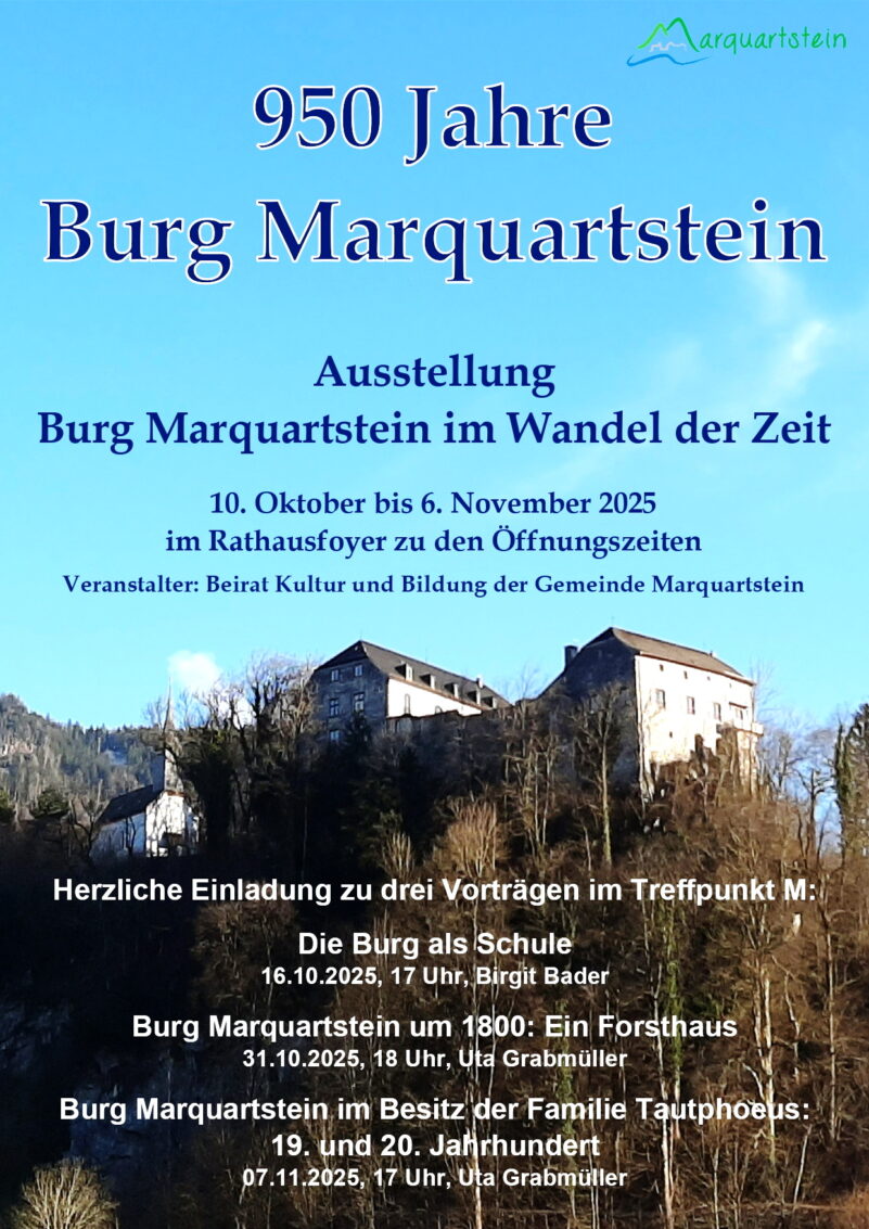 In diesem Jahr gibt es einen besonderen Jahrestag. Aus diesem Anlass bietet der Beirat Kultur und Bildung eine Ausstellung mit dem Titel: „950 Jahre Burg Marquartstein im Wandel der Zeit“.