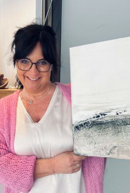 Petra Salzinger, geboren in Burghausen, wurde künstlerisch früh von ihrem Großvater, dem Glasmaler Rudolf Markowsky, beeinflusst. Salzingers abstrakte Acrylbilder entstehen durch das Auftragen von mehreren Schichten – meist lässt sich die Künstlerin durch den Prozess und die Dynamik des Bildes leiten. Die Bilder strahlen Ruhe aus und sind in gedeckten Naturtönen gehalten. Beide Künstlerinnen sind Mitglied im Kunstverein Altötting.