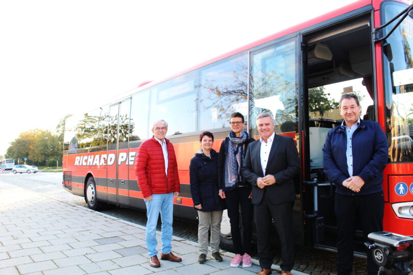 Bericht und Foto: LRA Landshut – Damit das neue Landratsamt Landshut auch über öffentliche Verkehrsmittel gut zu erreichen ist, wird die Buslinie 307 verstärkt. An der ersten Fahrt haben neben Vertretern des Busunternehmens Richard Petz auch Mitglieder der Landkreis-Verwaltung und Landrat Peter Dreier teilgenommen.