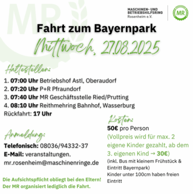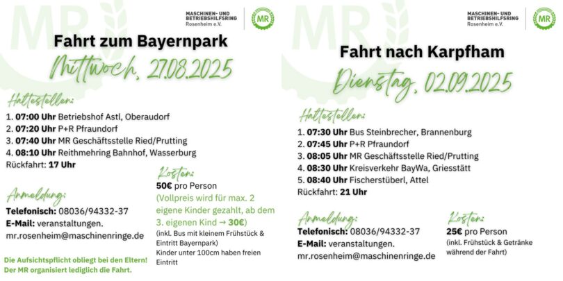 Der Maschinenring Rosenheim (MR) hat auch in diesem Jahr wieder zwei Ausflüge organisiert: