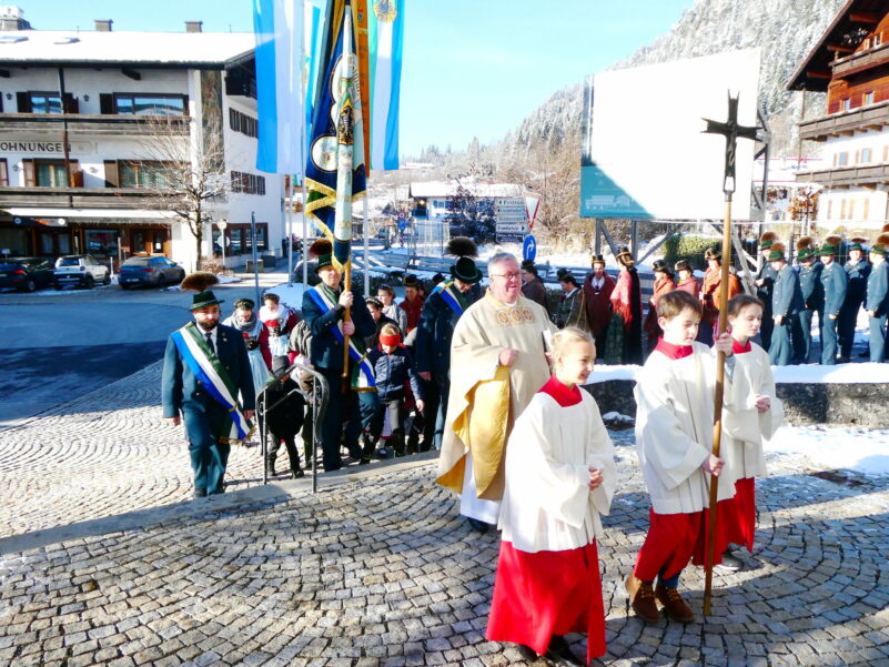 Klangvoll spielte die Musikkapelle Reit im Winkl in der Pfarrkirche eine Messe zu Ehren ihrer Schutzpatronin, der heiligen Cäcilia. Mit dabei waren auch die Mitglieder des Trachtenvereins „Dö Koasawinkla“, die mit ihrer Fahnenabordnung zu ihrem dabei gefeierten Jahramt eingezogen waren.
