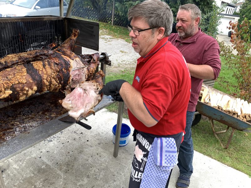 Mit Freibier und einem Spanferkel feierte am Kirchweih-Sonntag das Café Stürzer in Riedering sein einjähriges Bestehen. In Riederings Dorfmitte hat die Familie Siflinger-Lutz an der Stelle, an der früher ein Hof an der Simsseestraße stand, ein Mehrfamilienhaus mit Café-Restaurant nach vorne und eine Arztpraxis und Wohnungen nach hinten gebaut. Das Cafe wurde vor einem Jahr eröffnet, nunmehr konnte man mit Freibier, einem Spanferkel und Life-Musik das einjährige Bestehen feiern. Die Köchin, Veronika Lutz hat bereits im Fernsehen an Kochsendungen teilgenommen und auch gewonnen. Bei der Fernsehshow „Game of Chefs“ verpasste sie leider knapp den Sieg. Dafür freuen sich ihre Gäste in ihrem Cafe Stürzer in Riedering um so mehr auf ihre Kochkünste aus der gehobenen Gastronomie. Inszwischen hat sie ihre eigene Kochsendung und bekocht außerdem das deutsche Radprofiteam Bora-Hansgrohe bei internationalen Rennen.