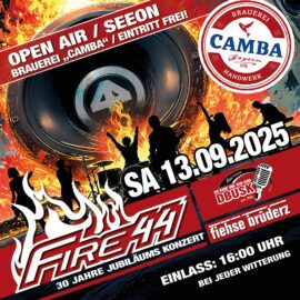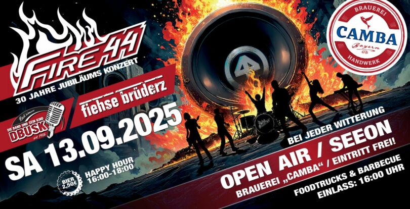 Für musikalische Unterhaltung sorgen Fire44, die ihr 30-jähriges Bandjubiläum feiern, sowie die Gruppen “DBUSK” und Fiehse Brüderz.