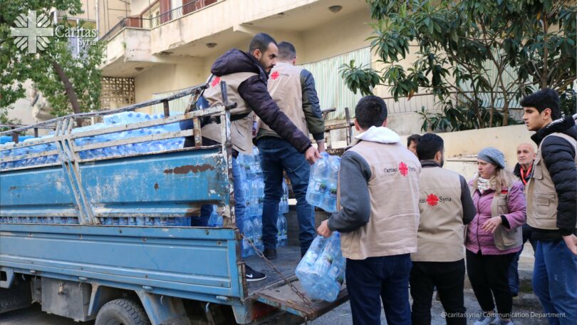 Im Erdbebengebiet von Syrien unterstützen die Partner von Caritas international die Menschen in den Wintermonaten zudem mit Lebensmitteln, Trinkwasser und Hygieneartikeln. Aufgrund der politischen Situation sind dort umfassendere Hilfen notwendig, wenngleich auch schwieriger zu leisten. Immer noch werden im Nordwesten von Syrien Trümmer des Bebens weggeräumt.
