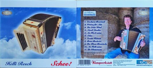Musikalisch setzt Resch dabei auf eine Mischung aus traditionellem Harmonikaspiel und Begleitungen im Oberkrainerstil, unterstützt durch Gitarre und Kontrabass. Mit dem charakteristischen Klang der Novak-Harmonika entstand so eine abwechslungsreiche Sammlung, die nun auf CD unter dem Titel „Schee!“ erschienen ist.