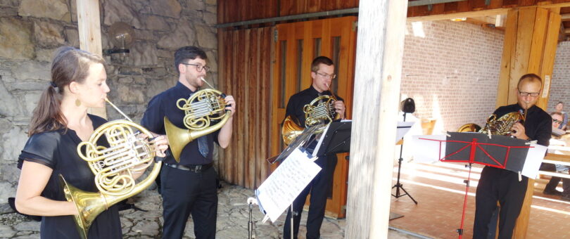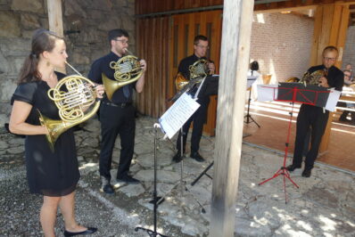 Herzlichen Beifall erhielt die „Chiemgau Horn Connection“ bei der Bergkirchen-Andacht im Innenhof der Kirche St. Johann im Gebirg auf der Winklmoos-Alm. Korbinian Kebinger, Sebastian Krause, Joseph Schillinger und Katharina Waldherr spielten auf ihren Waldhörnern meisterhaft Werke von Franz Strauss, Felix Mendelssohn-Bartholdy und Werner Pirchner.
