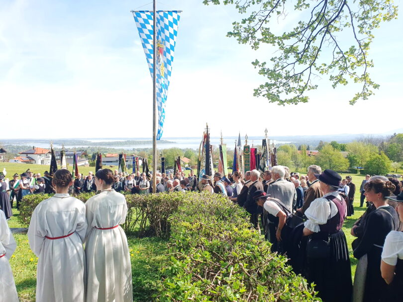 Den feierlichen Gottesdienst im Freien auf dem Parkplatz des Kindergartens feierten aufgrund der vorsommerlichen Witterung Pfarrer Gottfried Grengel und Pater Gabriel zusammen mit Abt Petrus Höhensteiger vom Kloster Schäftlarn, der sich als ehemaliger Hittenkirchener besonders über sein Mitfeiern freute. Weitere Ehrengäste des Gausonntags, die von Zweiten Schützenmeister Franz Thalhammer willkommen geheißen wurden, waren der Protektor des Schützengaues Chiemgau-Prien, Seine Königliche Hoheit Herzog Max in Bayern, Bernaus Erste Bürgermeisterin Irene Biebl-Daiber, der Gauschützenmeister des Patengaues Alzgau Anton Hochreiter aus Trostberg und Bezirks-Schatzmeister Armin Singer vom Schützenbezirk Oberbayern. Beim Gottesdienst und zum Totengedenken an der Kriegerkapelle mit herrlichem Chiemsee-Blick spielte die Wildenwarter Blaskapelle, der Schützengau Chiemgau-Prien legte zu Ehren der Toten einen Kranz nieder und die Gau-Böllerschützen schossen zum Salut. Der kirchlichen Feier folgte ein Festzug zum Trachtenheim, dort dankte in einem Grußwort Gauschützenmeister Bernhard Brehmer dem Jubelverein für die Gastfreundschaft. Die Wildenwarter Blaskapelle spielte noch zum Festausklang auf, die Hittenkirchender Schützendamen sorgten nach dem Mittagessen noch für Kaffee, Kuchen und Bewirtung.