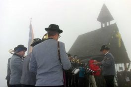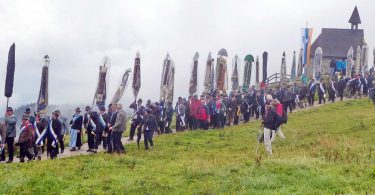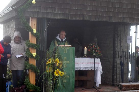 Fotos: Hötzelsperger, u.a. vom 93jährigen Sebastian Unterhuber, der beim Bau des Gipfelkreuzes und beim Bau der Gedächtniskapelle mitgearbeitet hatte.
