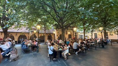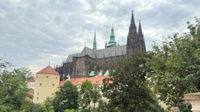 Ich fuhr insgesamt 30 km mit dem Fahrrad rund in und um die Innenstadt, wo die Menschenmassen immer wieder abrupt nachließen. Eines haben Tschechen und Bayern gemeinsam – die Biergärten! In dem 500 Jahre alten Biergarten spielte Blasmusik und begeisterte Einheimische und Touristen an den 20 m langen Biertischen. Man setzt sich einfach – auch wie in Bayern – irgendwo hin. Links von mir saßen 3 Frauen aus Kolumbien und rechts eine Familie aus Taiwan. So konnte ich mein Spanisch und Englisch mal wieder ein bisschen aufpolieren.