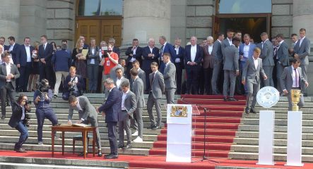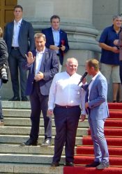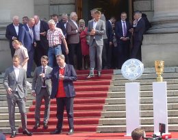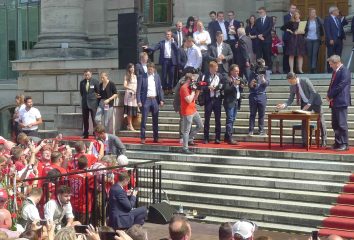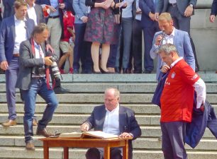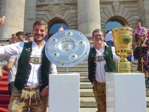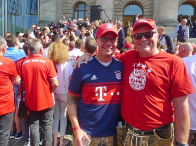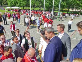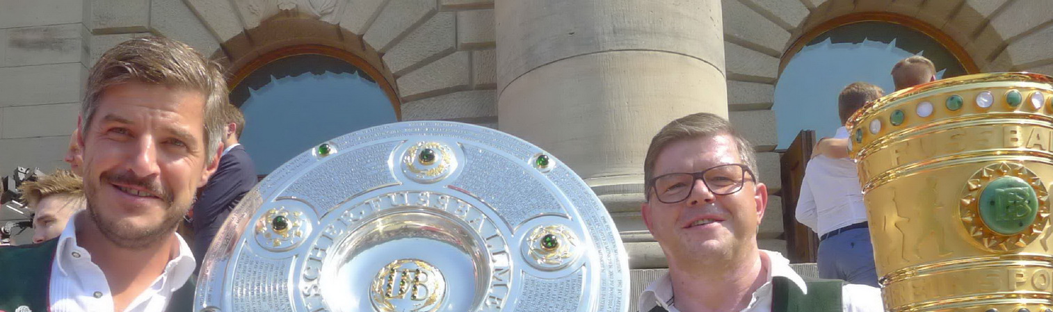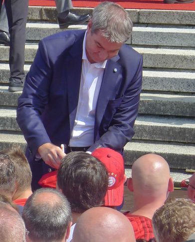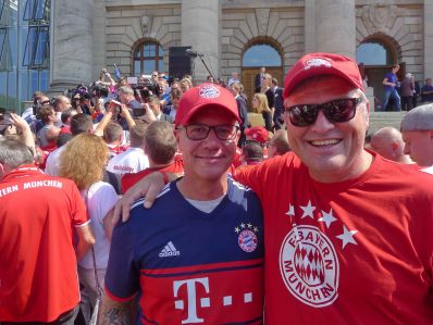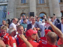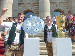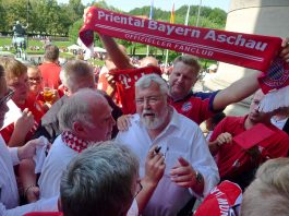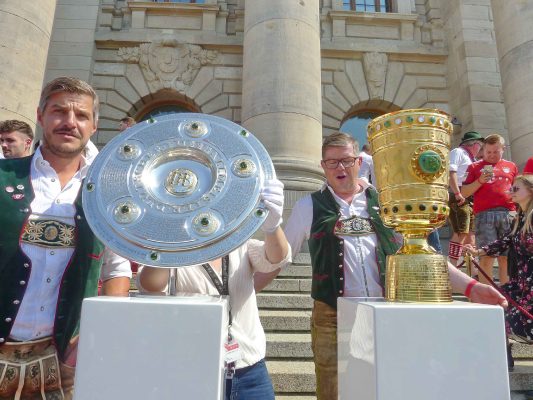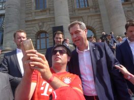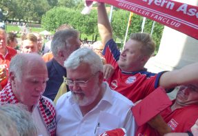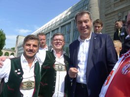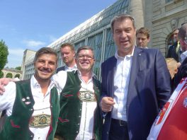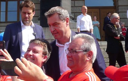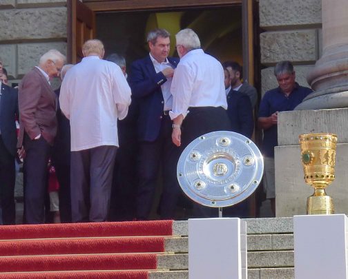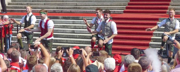 Fußball ist nicht nur international, sondern auch innerhalb von Bayern grenzenlos: dies zeigte sich als aus allen bayerischen Regierungsbezirken Fan-Clubs nach München reisten, um auf Einladung von Bayerns Ministerpräsidenten Dr. Markus Söder den Fußball-Double-Sieger FC Bayern München zu ehren und zu feiern. Mit dabei waren dabei auch viele Chiemgauer FC-Bayern-Fan-Clubs, unter anderem vom größten, dem Verein „Die 13 Höslwanger“ sowie aus Aschau, Prien und vom Samerberg. Mittendrinn auch Bezirksrat und Bayernbund-Landesvorsitzender Sebastian Friesinger als bekennender Bayern-Fan und Mitglied bei der Höslwanger Fan-Gemeinschaft. Von der Teilnahme der Chiemgauer und vom Empfang des Bayerischen Ministerpräsidenten insgesamt noch eine zweite Bilder-Reihe.
