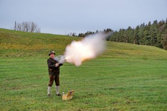 „Der Chiemgau wacht auf“ – díeses Motto hatte sich der Schützengau Chiemgau-Prien für das heurige Christkindl-Anschießen gegeben. Wie Sebastian Hering aus Eggstätt, seit 2019 Bezirksreferent für Süd-Ost-Oberbayern mit 15 von ihm betreuten Schützengauen mit 139 Böllergruppen und 2.000 Böllerern informiert, wurde wegen Corona ein alternatives Konzept entwickelt. „Von Natur aus ist es bei uns, wenn wir in der Gruppe antreten, schon ratsam und vorgeschrieben, dass wir Abstand halten. Aber heuer vergrößerten wir den Abstand um ein Vielfaches, weil wir vereinbarten, dass jeder Böllerschütze an einem geeigneten Platz an seinem Wohnort alleine tätig wird“ – so der Pressesprecher und Böllerreferent des Schützengaues Chiemgau-Prien, dem in 30 Vereinen rund 4.000 Schützen angehören. Vereinbart wurde federführend von der Königlich Privilegierten Feuerschützengesellschaft Prien und dessen Böllerreferenten Otto Dauer eine Sonderregelung mit dem Landratsamt Rosenheim. Diese besagte, dass pünktlich um 16 Uhr am Heilig Abend der erste Schuss zeitgleich von den Einzel-Schützen von insgesamt drei Schüssen erhallt und die Bevölkerung so auf das Weihnachtsfest hingewiesen wird. An der Initiative des Schützengaues Chiemgau-Prien beteiligten sich Mitglieder der Böllergruppen aus Prien, Rimsting, Eggstätt, Bad Endorf, Babensham und Wasserburg. „Auch wenn wir uns gegenseitig nicht treffen, sehen und hören konnten, so war das Anschießen des Christkindls etwas Besonderes und es diente unserer Glaubens- und Traditionspflege“ – so Sebastian Hering. Auch für den Jahreswechsel ist wieder eine Sonderregelung in Überlegung, gedacht ist dabei, dass am Donnerstag, 31. Dezember um 19.30 Uhr, 19.35 Uhr und 19.40 die Böllerer wieder aktiv werden, um den Brauch des Silvester- und Neujahrs-Schießens zu pflegen.
