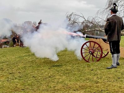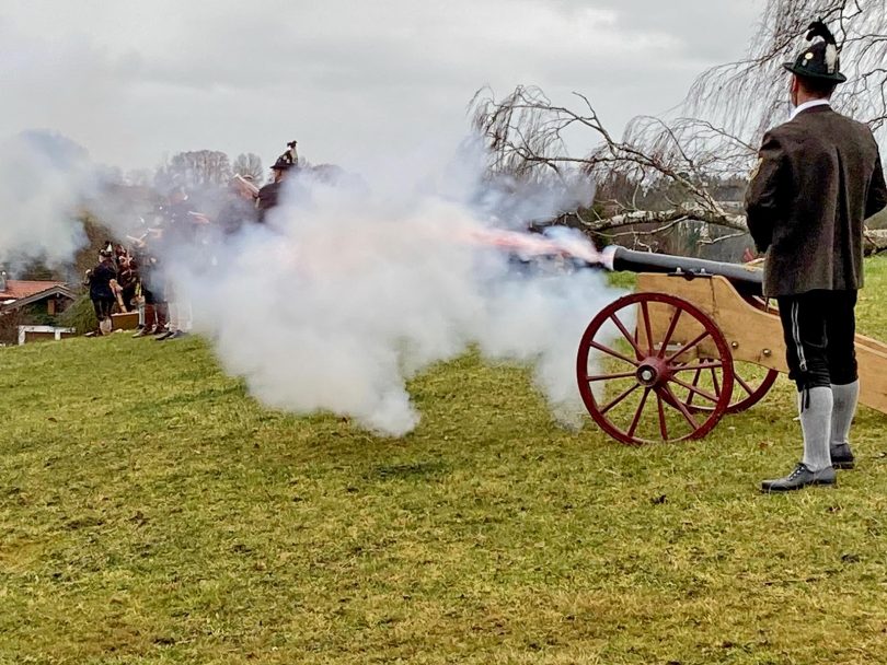 Die lautstarke Ankündigung des Weihnachtsfestes in Form des „Christkindl-Anschießens“ wird in vielen Orten gepflegt. Wie Sebastian Hering aus Eggstätt, seit 2019 Bezirksreferent für Süd-Ost-Oberbayern mit 15 von ihm betreuten Schützengauen mit 139 Böllergruppen und rund 2.000 weiblichen und männlichen Böllerern informiert, wurde ein zeitgleiches Böllern vereinbart. So fanden sich Priener, Rimstinger, Breitbrunner, Griestätter, Pfaffinger, Forstinger, Eggstätter („Moosböllerer“) und Bad Endorfer Gruppierungen an Chiemsee-Ufern, am Inn, am Weiher in Breitbrunn und in Amerang ein. Unsere Aufnahme zeigt Bad Endorfer Böllerschützen bei ihrem Auftritt in Amerang. Auch zum Jahreswechsel wollen die Böllerschützen aus dem Chiemgau wieder ihren Brauch pflegen, dazu Sebastian Hering: „Aufgrund der Form unserer Brauchtums-Ausübung ist die Wahrung des Abstands schon vorgegeben, aber dennoch schauen wir, dass es zu keinen größeren Ansammlungen von Aktiven und Zaungästen kommt“.