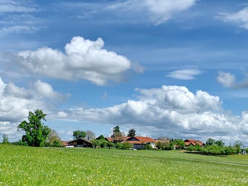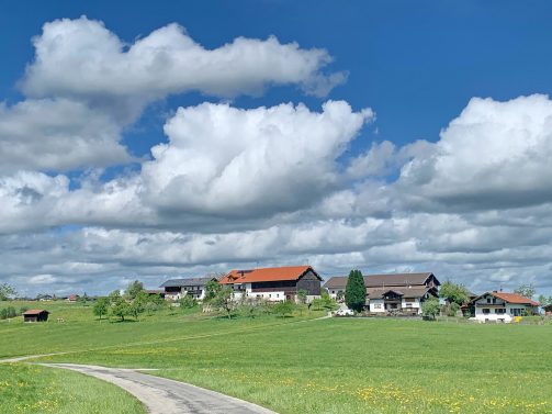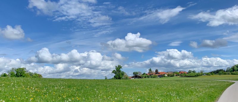 Weiß-blauer Himmel mit einem besonders ausgeprägten Wolkengebilde sowie zwischendurch immer wieder wärmender Sonnenschein – ein eigentlich ideales 1.-Mai-Wetter. Doch weit und breit waren entgegen der Vorjahre bei solchen Wettervorteilen keine Maibaumgespanne zu sehen und an keinem Dorfplatz wurde ein Maibaum mit viel Musik, Publikum und Drumherum aufgestellt. So blieb es dabei, dass man sich mit gebührendem Abstand zum nächsten Wanderer oder Radler an der Schönheit der Chiemgauer Landschaft zum Beginn des Wonnemonats Mai erfreuten konnte.