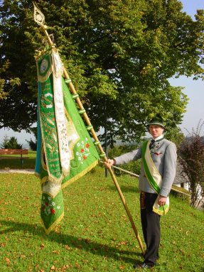 Schließlich war alles für die vorgesehene Fahnenweihe gerichtet, deren Ablauf man sich schon als Vorbild beim benachbarten Veteranen- und Kriegerverein genau angesehen hatte: die Veteranen und die Feuerwehren gründeten ihre Vereine fast alle zur gleichen Zeit, wie die Trachtler, aber sie hatten kein so unüberwindlichen Schwierigkeiten zu bestehen. Was hatte es denn nun damit auf sich? Musste das ganze Fest abgeblasen werden und die Fahne im benachbarten Salzburg geweiht werden? Denn das eine war allen Beteiligten klar: eine Fahne musste den kirchlichen Segen haben. Ohne den Segen des Himmels war es keine Fahne, kein Symbol für die Gemeinschaft, sondern blieb ein Stück buntes Tuch.