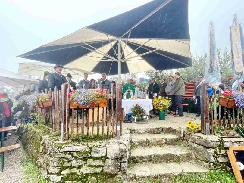 Fotos: Hötzelsperger – Eindrücke von der 72. Gedenkmesse auf der Kampenwand – wegen der Witterung erstmals nicht an der Kapelle „Maria, Königin des Friedens“, sondern an der Steinling-Alm.