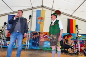 Mit Bierkrügerl, Bildbänden sowie mit Volksmusik, Trachtentänzen und Schuhplattlern bedankte sich die Chiemgauer Delegation für die Einladung. Bühnenauftritte erfolgten durch Christine Steinbacher (Baß-Klarinette und Tenorhorn) und Sepp Rasp (Ziach) mit stimmungsvoller Volksmusik sowie durch vier Trachtenpaare vom Trachtenverein „Daxenwinkler“ Atzing. Einen Tag nach dem Festabend gestalteten diese einen zünftigen bayerischen Frühschoppen, auch da war das Jubiläumszelt wieder voll besetzt. Zum Programm der Chiemgauer gehörte auch der Besuch der Vogelburg in Hasselbach, einer weitum bekannten Auffangstation für Papageien. Mit dem Versprechen, auch fortan die Freundschaft mit Aktivitäten aufrecht zu erhalten, traten die Bayern die Heimreise an. Bürgermeister Götz Esser sagte dabei gleich zu, das Jubiläum „125 Jahre Trachtenverein Atzing“ am Sonntag, 24. Juli im Rahmen eines Waldfestes zu besuchen.