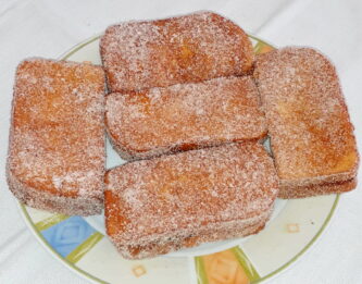 Fotos: Hötzelsperger – 1. Am Stand des Helferkreises von Ternopil links Marina und Olga aus der Ukraine sowie Elisabeth und Marianne vom Chiemgauer Helferkreis. 2. Ebenfalls am Stand: Elisabeth und Marianne links sowie Marina und Olga rechts. 3. Ukrainische Spezialität: Zwetschgenbavesen mit Zucker.