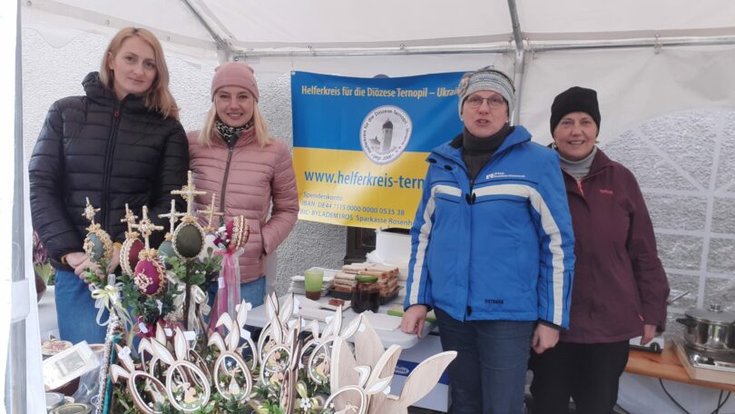 Mit ukrainischen Spezialitäten präsentierte sich der Chiemgauer Helferkreis für die Erzdiözese Ternopil (West-Ukraine) auf dem heurigen Priener Josefi- und Mittfastenmarkt. In einem eigens aufgebauten Zelt wurde das Helferkreisteam von den in Prien lebenden Ukrainerinnen Marina und Olga unterstützt.