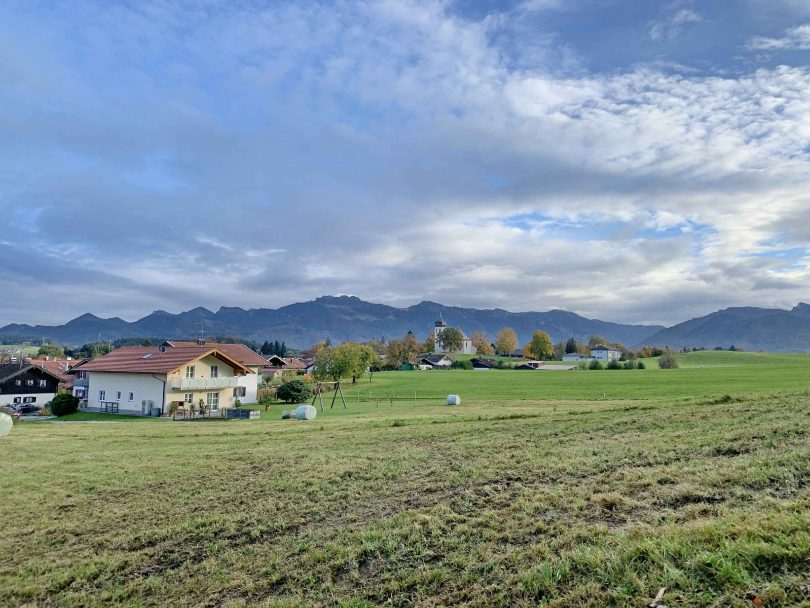 Die Feld- und Siloernte neigt sich dem Ende zu, das Wetter ist wechselhaft und dennoch zeigen sich gerade im Chiemgau im Herbst die Landschaftsbilder von einer stimmungsvollen Seite – wie diese aktuellen Aufnahmen von Prutdorf mit Blick über die auf einem Hügel stehende Pfarrkirche “Christkönig” Wildenwart hinein in die nahe Bergwelt zeigen.