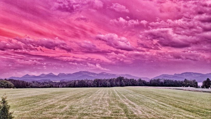 In besonders starker Farbenpracht präsentierte sich am Dienstagabend der Himmel über dem Chiemgau – wie diese lila- und rot-farbenen Aufnahmen in Prien-Bachham und Prien-Stetten zeigen.