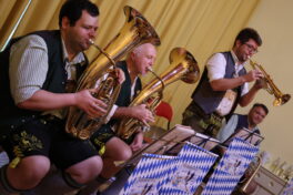 „Nicht alle Trachtler können schuhplatteln“, räumte der Kapellmeister mit einem nördlich des Weißwurstäquators verbreiteten Klischee auf … Um dann gleich zwei Kindsbier-Musikanten auf den Tanzboden zu bitten und sie „platteln“ zu lassen. Mit Johannes Thusbaß aus der im Landkreis Rosenheim gelegenen 3000-Seelen-Gemeinde Prutting (https://www.prutting.de/) war sogar ein leibhaftiger Bürgermeister darunter. Der plattelnde Rathauschef wirkte ansteckend auf das Publikum: Am Schluss der Veranstaltung war die Tanzfläche mit mehreren tanzenden Paaren gut gefüllt.