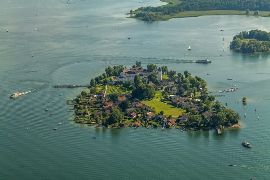Die Aufnahmen zeigen unter anderem die Fraueninsel, das Kaisergebirge, das Kloster Attel, Seebruck am Chiemsee und den Samerberg