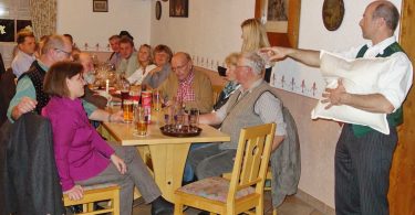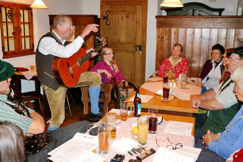 „Ois duat wartn, ois is stad“, sang Horst Kaltenegger im Schützenstüberl der Schlosswirtschaft von Wildenwart gemeinsam mit den Besuchern der Öffentlichen Singstund des Chiemgau-Alpenverbands begleitet von Liesi Huber und den Huber Dirndln. „Kathrein sperrt Bass und Fiedel ein – das gilt nur fürs Tanzen, vom Singen hat sie nichts gesagt“, munterte er die Besucher auf mitzumachen. Aus der ganzen Region zwischen Feldwies, Grassau und Aschau fanden viele zur Singstund in die Schlosswirtschaft. Auch ein paar zufällig anwesende Gäste wurden kurzerhand in das Geschehen eingebunden. Nach einem kurzen Einsingen nach alter Schule sangen die Besucher zwei Stunden miteinander und stellten erst beim abschließenden Lied fest, wie schnell doch die Zeit vergeht. Gaumusikwart Thomas Hiendl überzeugte sich persönlich von der Qualität dieser Singstund. „Gemeinsam singen und gemeinsam musizieren – alt und jung immer miteinander“, der Chiemgau-Alpenverband bemüht sich sein Motto „Oid und Jung mitanand“ auch bei den gemeinsamen Musikveranstaltungen durchzuhalten. Die Singstund in der Schlosswirtschaft war die erste einer ganzen Reihe von Veranstaltungen, die Gaumusikwart Thomas Hiendl über Oberwössen, Bernau und Greimharting durch den ganzen Chiemgau führen wird. Musiklehrer und namhafte Vertreter der regionalen Volksmusik unterstützen Hiendl in den Wintermonaten, um die Bevölkerung in verschiedenen Gemeinden wieder mehr zum Singen zu animieren. Dabei sind keine Kenntnisse erforderlich, sowohl Text als auch Melodie werden gemeinsam „einstudiert“. Die nächste Veranstaltung mit Gaumusikwart Thomas Hiendl unterstützt von Gabi Reiserer und Hans Wiesholzer ist am Freitag, 25. Januar um 19.30 Uhr im Poststüberl in Oberwössen.