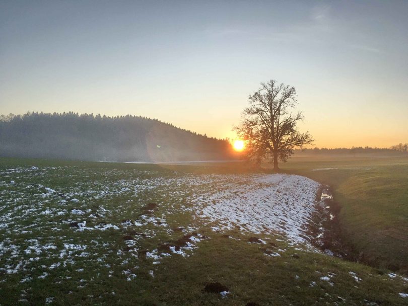 Nur wenig Schnee, frische Wind und eine klare, kalte Luft zum Ende eines Dezember-Tages sorgen derzeit im Chiemgau für stimmungsvolle Momente zum Innehalten. Passend zur Adventszeit und zu der damit verbundenen Erwartung von Festtagen zeigt sich die Landschaft in Ruhe, in warmen Farben und mit einer gewissen Gelassenheit, die bei all den vorweihnachtlichen geschäftlichen Unruhen auch zu empfehlen ist. Unsere Bilder entstanden zwischen Gaishacken und Stetten in der Gemeinde Prien.