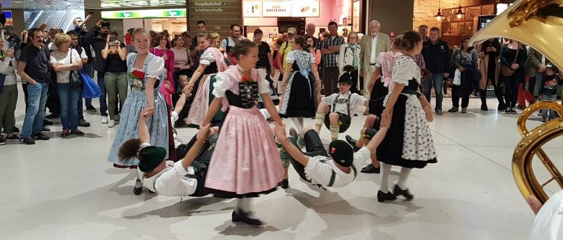 Auf Einladung des Festrings München durfte die Gaujugend des Chiemgau-Alpenverbandes in der Stachus Passage in München auftreten. Als musikalische Begleitung war die Rottauer Tanzlmusi mit dabei. Viele Gäste bzw. „Vorbeigehende Passanten“ blieben stehen und verfolgten die Auftritte mit großem Interesse. Die Jugendlichen waren mit viel Freude und Engagement bei ihren Auftritten und genossen den direkten Kontakt mit dem Publikum. Nach „getaner Arbeit“ ging es zum Schnitzelwirt, um sich für den zweiten Teil dieses Nachmittags bzw. Abends zu stärken.