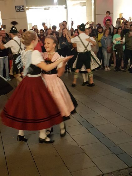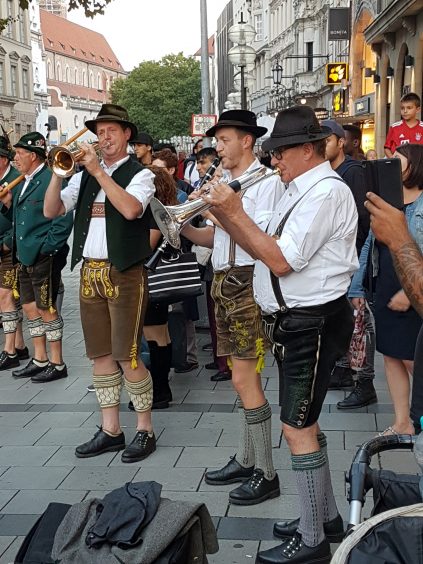 Ausgeruht ging es dann weiter mit den Auftritten in der Kaufingerstraße und der Neuhauserstraße. Lautstark unterstützen uns da, neben der Rottauer Tanzlmusi, die Hafenstoaner Alphornbläser aus Bernau.