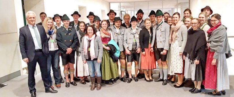 Im Rahmen ihrer Reise nach Berlin mit Auftritten bei der Internationalen Grünen Woche in Berlin lud der Traunwalchener Bundestagsabgeordnete Dr. Peter Ramsauer die Trachtlerinnen und Trachtler der Trachtenvereine „Koasawinkla“ Reit im Winkl und „D´Rechlberger“ Oberwössen zu einem Informations-Besuch in den Deutschen Bundestag ein. Dabei erläuterte Peter Ramsauer das aktuelle politische Geschehen in Berlin und wie Politik aus der Sicht eines Abgeordneten funktioniert. Im Anschluss daran stellten sich die Chiemgauer mit ihrem Wahlkreisvertreter zu einem Gruppenfoto und danach ging es noch auf die Kuppel, um Berlin aus einer ganz besonderen Perspektive zu betrachten. Mit einem herzlichen „Vergelt´s Gott“ bedankten sich Andreas Speicher und Lucas Irlinger namens der beiden Vereine bei Peter Ramsauer und seinem Mitarbeiter Siegfried Kneifel für die freundschaftliche und informative Einladung.