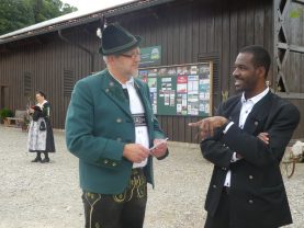 Auch einige Wochen nach dem gelungenen Chiemgauer Trachtenfest anlässlich des 120. Geburtstages vom GTEV „Daxenwinkler“ Atzing hält die gute und dankbare Stimmung an. Ein besonders herzlicher Gruß kam in diesen Tagen aus Ghana in Afrika. Von der dortigen Stiftung „Regentropfen – Bildung zum Leben“ nahm dessen Gründer und Vorstand Pater Dr. Moses Asaah SVD (Societas Verbi Divini – Katholischer Orden der Steyler Missionare) am Festgottesdienst und Festumzug beim Gaufest-Sonntag zusammen mit Pfarrer Klaus Hofstetter und mit Pfarrer Josef Steindlmüller teil. In Abstimmung mit den örtlichen Kirchen schlug der Festverein vor, die Gottesdienst-Kollekte an diesem Tag der Stiftung Regentropfen zugutekommen zu lassen. 3.900 Euro wurden dabei gesammelt, der Trachtenverein selbst hat auf 4.000 Euro erhöht und diese Summe an die Stiftung überwiesen. Von dieser kam nunmehr ein Dankeschön in Form eines Fotos aus Namoo mit der Aufschrift „DANKE, LIEBE DAXENWINKLER“. Das Bild von feschen und jungen Mädchen zeigt diese nicht ganz ohne Stolz mit ihren traditionellen Kleidern. Pater Moses seinerseits bedankte sich mit herzlichen Worten und besonders dafür, dass er in seinem von ihm sehr geliebten Bayern (seit vielen Jahren pflegt er aktive und persönliche Verbindungen ins bayerische Inntal) das Trachtenfest beim Gottesdienst und in der Festkutsche miterleben durfte. „Vergelt´s Gott für Eure Großzügigkeit und für Eure Freundschaft“ – so der 45jährige Pater Moses, der selbst aus ärmlichen Verhältnissen aufgewachsen ist und der weiß, wie dringend die Jugend in seiner Heimat Hilfe braucht und wie wichtig eine fundierte Ausbildung ist. Vor seinem Eintritt in den Orden der Steyler Missionare studierte er an der University of Ghana/Legon Betriebswirtschaft. Seit 2001 lebt er in Deutschland und ist in der Wissenschaft und als Seelsorger tätig. Aus Dankbarkeit für die Hilfe, die ihm zuteil wurde und im christlichen Grundgedanken des Füreinanders wuchs in ihm schon früh die Sehnsucht, später einmal für Andere zu sorgen und eine Ausbildung zu ermöglichen. Sein Motto geht zurück auf Mutter Teresa von Kalkutta und es lautet: „Ich bin nur ein Tropfen im Meer, aber ohne mich gäbe es kein Meer“.  Aufgrund der vielen und positiven Eindrücke, die Pater Moses in Atzing gesammelt hat, will er zu gegebener Zeit wieder kommen und mit einem Farblichtbilder- und Filmvortrag über seine Stiftung und über die von dieser in Ghana geschaffenen Bildungs- und Sozialeinrichtungen berichten.