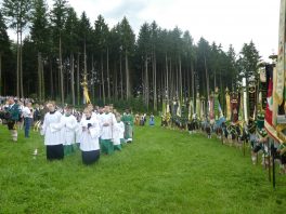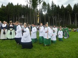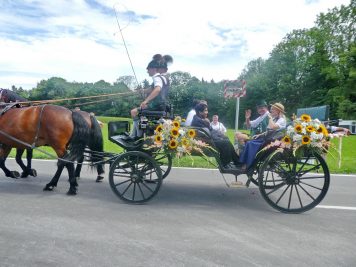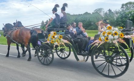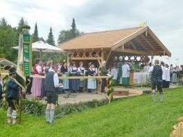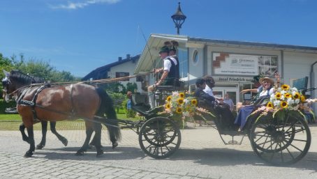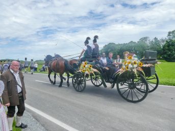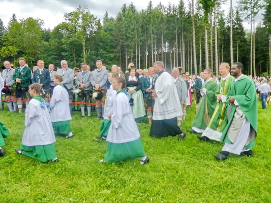 Fotos: Hötzelsperger – Eindrücke vom Besuch von Pater Moses beim Gautrachtenfest in Atzing – u.a. im Gespräch mit Georg Leidel aus Hittenkirchen, beim Einzug zum Gottesdienst und in der Festkutsche.