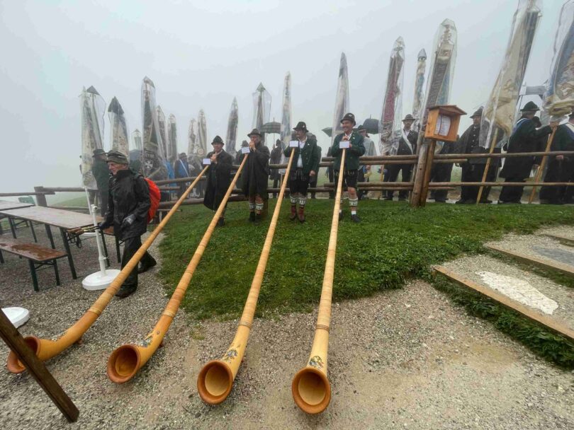 Chiemgauer Gedenken auf der Kampenwand – erstmals Gottesdienst an der Steinlingalm – wettertrotzendes Glaubensbekenntnis