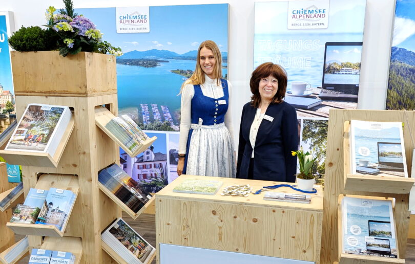 Bericht und Foto: Chiemsee-Alpenland Tourismus – v.l.n.r.: CAT-Mitarbeiterinnen Martina Bommer und Dagmar Mayer präsentieren die Urlaubsangebote aus der Region.