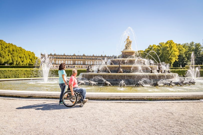 Bericht und Foto: Prien Marketing GmbH – Heutzutage spielt im Marketingmix die Bildsprache mitunter die wichtigste Rolle. Daher führte CAT ein Barrierefrei-Fotoshooting durch (hier Astrid von Rauhecker und Siegfried Loer vor Schloss Herrenchiemsee), um für crossmediale Maßnahmen von Social Media bis hin zu Print-Broschüren authentisches Bildmaterial einsetzen zu können.