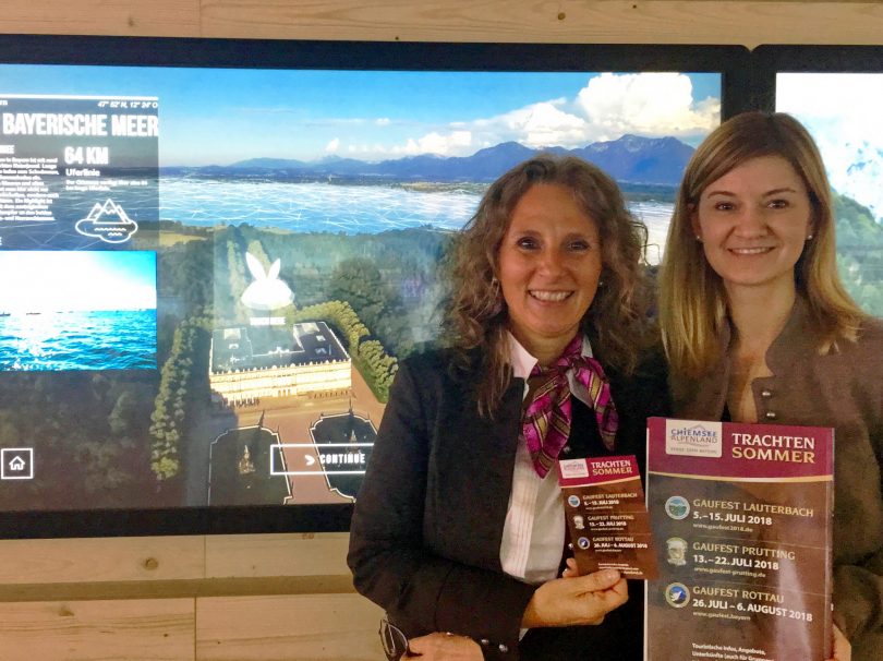 Bildunterschrift Bild 2 (von links): Christina Pfaffinger (Geschäftsführerin CAT) und Sandra Grundl (Marketingleitung CAT) bewerben den Trachtensommer auf der ITB in Berlin.