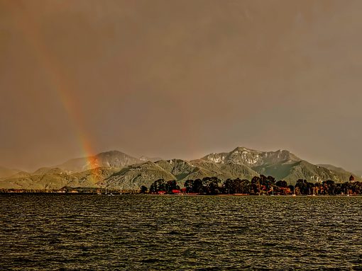 Wie so oft nach einem Sturm und Regen zeigt sich die Natur hernach etwas versöhnlich, zuweilen mit farbigen Regenbogen-Momenten – wie diese Bilder vom Chiemsee zeigen, sie entstanden nach dem jüngsten Gewitter über dem Chiemgau und am Morgen danach.