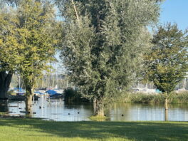 Unsere aktuellen Bilder zeigen das Ufer in Bernau-Felden mit dem im Wasser versteckten Anlegesteg der Chiemsee-Schifffahrt.